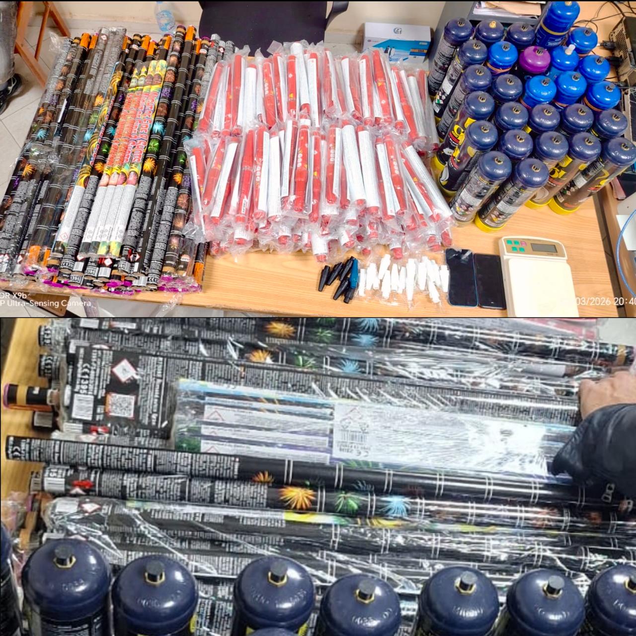 وأضافت ذات المصادر أن عملية الضبط والتفتيش المنجزة قادت إلى العثور بحوزة المشتبه فيهم على 330 وحدة من المفرقعات والشهب الاصطناعية وسلاح أبيض، علاوة على 28 عبوة من غاز يستعمل في التخدير وميزان إلكتروني.