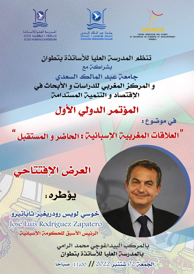 تنظم المدرسة العليا للأساتذة يوم 2 شتنبر القادم النسخة الأولى من المؤتمر الدولي حول “العلاقات المغربية الإسبانية : الحاضر والمستقبل”.