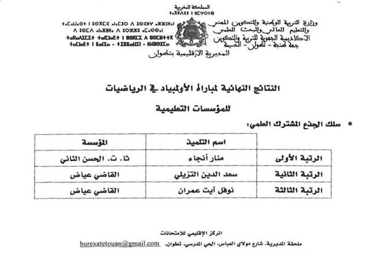 كما قام السيد المدير الإقليمي بتكليف مكتب الأنشطة في شخص السيد مصطفى استيتو بالسهر على حسن تنظيم الأولمبياد حيث كان له اليد الكبير في إنجاح المبادرة من أولها إلى أخرها. بلغ عدد المتبارين ما يناهز 138 تلميذ وتلميذة من مستويات مختلفة “السنة السادسة من السلك الابتدائي̨ السنة الثالثة من السلك الثانوي إعدادي و سلك الجدع المشترك العلمي”، يمثلون مختلف المؤسسات التعليمية العمومية والخصوصية تم انتقائهم من طرف مؤسساتهم باعتماد معايير دقيقة ترتكز بالأساس على مؤهلاتهم المنهجية في مادة الرياضيات.