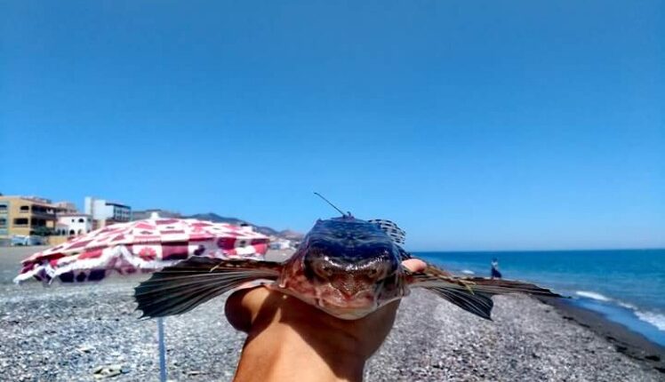 تمكن شباب هواة للصيد بالقصبة بشاطئ واد لو ، من اصطياد سمكة غريبة الشكل والحجم تمتلك جناحين.